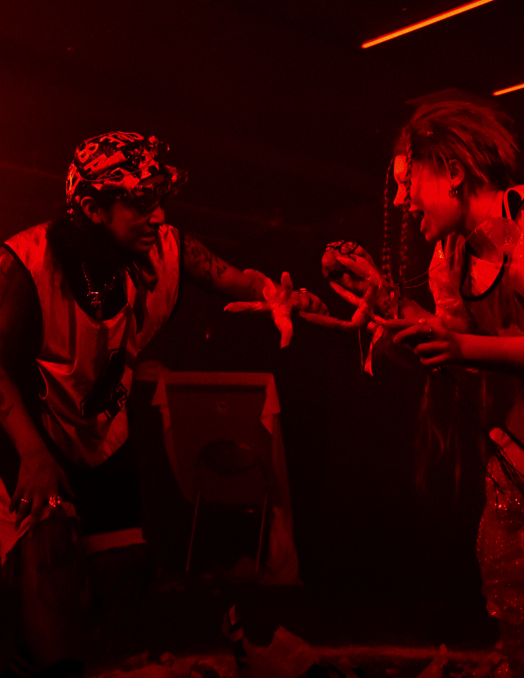 Mallika makes object & sound-led performances, playing with the sensory experience of liveness to create something both familiar & alien, a strange dream thing. Characteristically surreal, they evoke discomfort to the normative unconscious and crack open the binary of real and not-real. She are interested in consulting more-than-human perspectives and behaviour to interrogate non extractive systems of exchange with each other and the land.